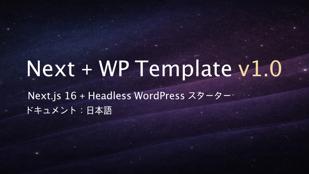 Next.js 16 + Headless WordPress 構成のスターターテンプレート。ブログ/カテゴリ/タグ/SEO/サイトマップ等の“毎回やる初期セットアップ”をまとめて省略できます。